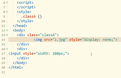 2. 按下Ctrl后繼續(xù)雙擊第2個style屬性后的引號內(nèi)側(cè),可選中2個引號內(nèi)的選區(qū)。