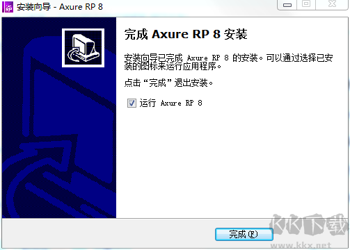 3.安裝完成之后同,我們點擊完成就可以運(yùn)行Axure RP 8軟件??梢韵韧顺?br />