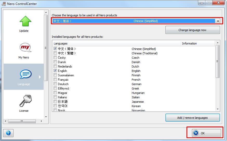Nero8安裝后是英文的怎么改成中文?