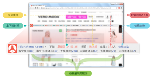 看店寶插件可以配合百度瀏覽器、360瀏覽器、QQ瀏覽器使用,安裝后用戶可以查詢淘寶寶貝的下架時間、類目、價格變化、淘寶搜索天貓搜索直通車無線搜索展現(xiàn)詞等功能,非常適合淘寶店家使用。