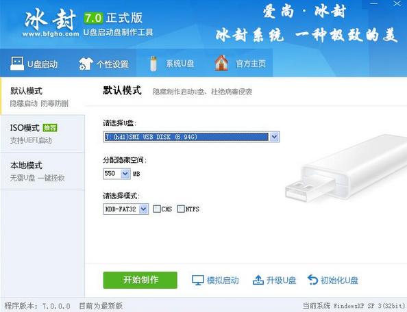 第二步:用冰封u盤(pán)啟動(dòng)盤(pán)制作工具制作啟動(dòng)盤(pán)