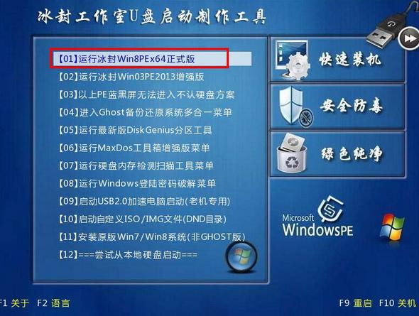 1:選擇運(yùn)行冰封WIN8PE X64