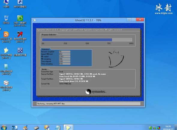 5:安裝完成 電腦會(huì)自動(dòng)重啟以冰封系統(tǒng)舉例: