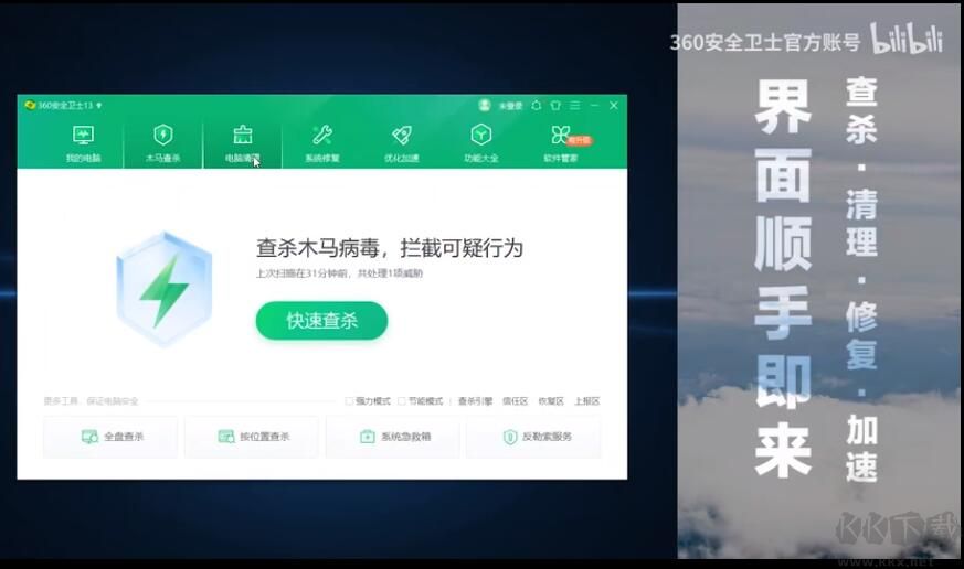 界面更新更順手:查殺、清理、修復(fù)、加速