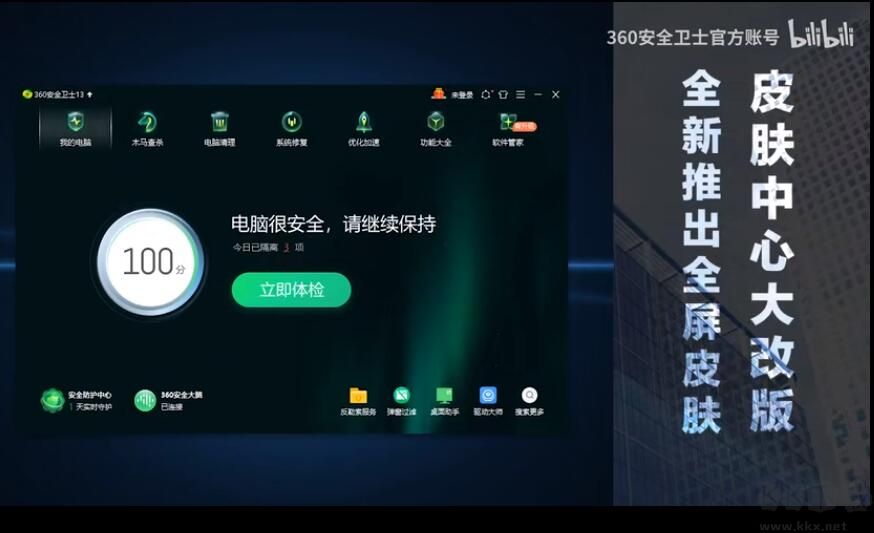 360安全衛(wèi)士13正式版于2021年最新發(fā)布,全新改版的UI界面,更加清晰,加快掃描內(nèi)核,電腦掃描只需1分鐘,還有全新全屏皮膚,強悍的防護體系更新到7.0,可以幫助用戶防御更多病毒,喜歡的朋友就趕緊來下載360安全衛(wèi)士13正式版吧!