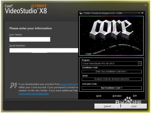 2、選擇Corel VideoStudio Pro X8 v18.0,復(fù)制【Serial】里的序列號(hào),粘貼到【Serial Number】中,然后點(diǎn)擊【Next】