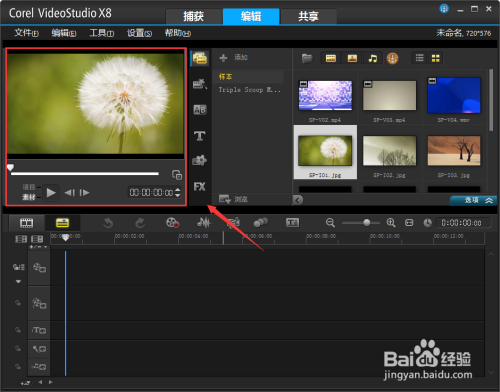 5、打開安裝完成的Corel VideoStudio Pro X8,默認(rèn)為英文界面
