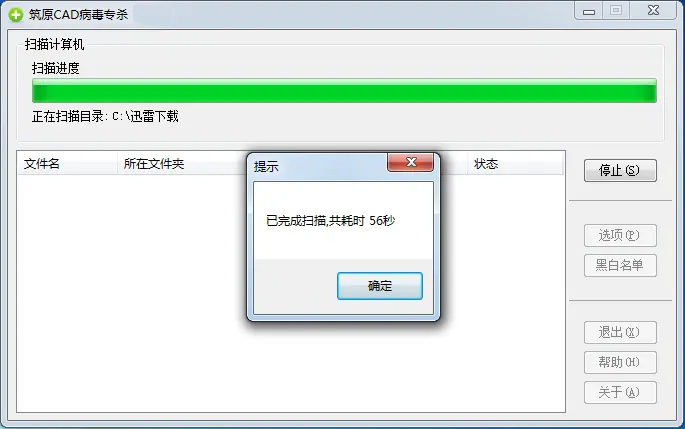 1、打開(kāi)筑原CAD病毒專殺條件,點(diǎn)擊開(kāi)始,等待進(jìn)度條走完