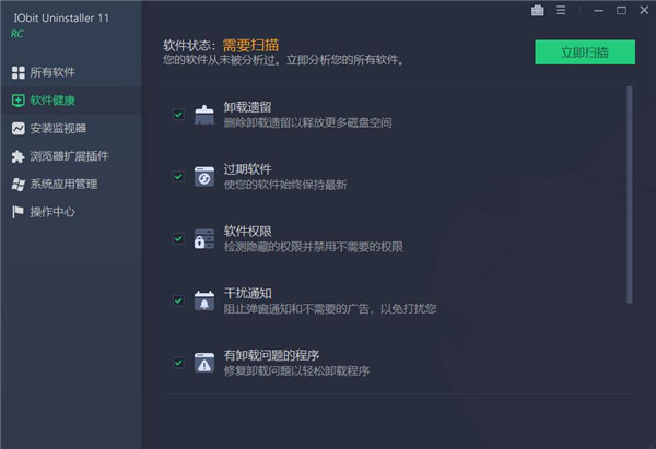 檢測到其他卸載程序的卸載操作時通知我:收到此通知后,您可以使用IObit卸載程序的強大掃描功能查找并刪除程序殘留。