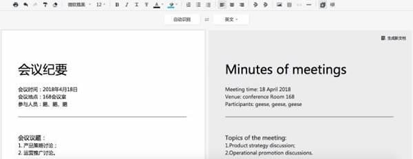 被翻譯后的內(nèi)容也可以一鍵生成文檔,方便大家查看和保存。
