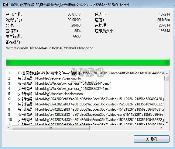 6、完成100%后,無需理會報錯提示,點擊關閉,即可。