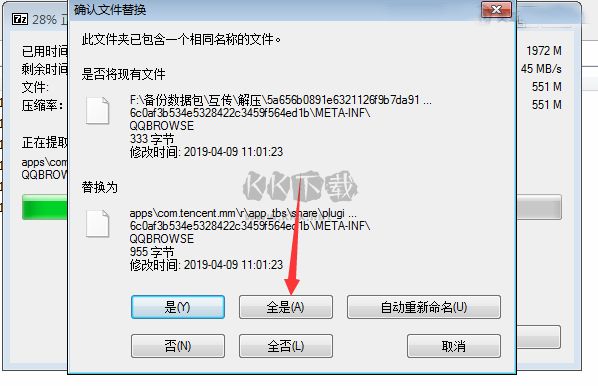 5、解壓過程中,有提示文件替換的,全部選是。