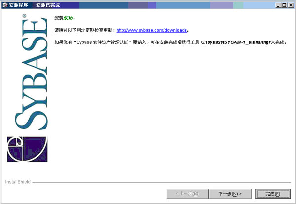 11、安裝完成,點(diǎn)擊“完成”,恭喜你,Sybase數(shù)據(jù)庫(kù)安裝成。