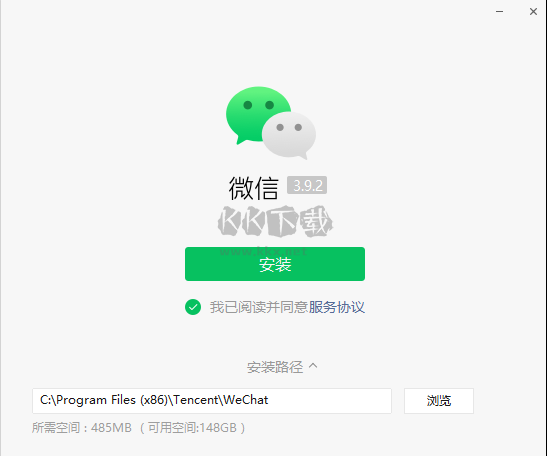 2、接著,我們同意協(xié)議、點(diǎn)擊【安裝路徑】,即可選擇微信電腦版安裝的路徑,這里建議大家避免將微信安裝至系統(tǒng)盤(pán);