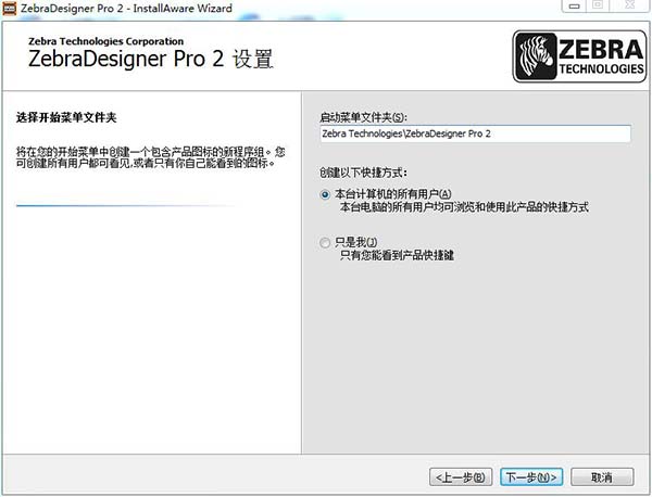 5、選擇開始菜單文件夾以及選擇為本臺計算機所有用戶安裝。