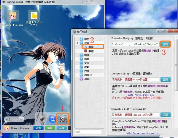 新手應(yīng)用【VNR最新版本】+【J北京市】就可以。假如開啟游戲有錯碼請下載LocaleEmulator。假如要想有中國漢字相匹配平假名拼音請下載UniDic當(dāng)代日本語辭書。假如要想查詞語意思,能夠下載小學(xué)館日中整合詞典。下載進(jìn)行必須的專用工具后請打開VNR里邊的偏好設(shè)置開展設(shè)定。