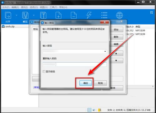 5、返回“密碼管理器”窗口,點(diǎn)擊“確定”按鈕,再重啟Bandizip即可。