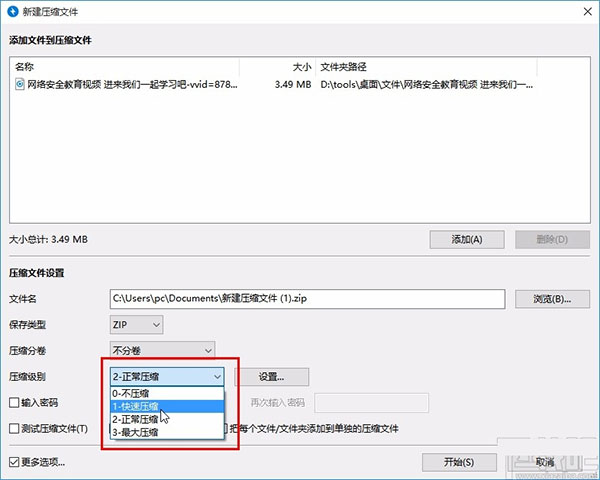 6、下一步還可以設(shè)置壓縮級(jí)別,我們打開(kāi)壓縮級(jí)別界面之后根據(jù)自己的需求來(lái)勾選即可,如下圖中所示;