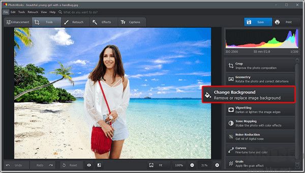 啟動(dòng) PhotoWorks,導(dǎo)入照片以添加背景并切換到工具選項(xiàng)卡。從軟件工具包中,選擇更改背景