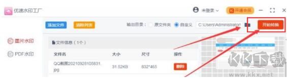 3.完成設(shè)置后,為圖片選擇保存路徑,點(diǎn)擊開始轉(zhuǎn)換按鈕
