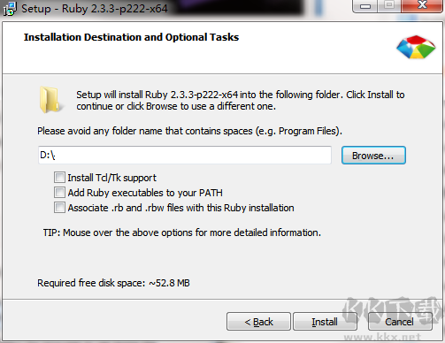 1.在kk下載站下載Ruby最新版安裝包,雙擊“exe”文件