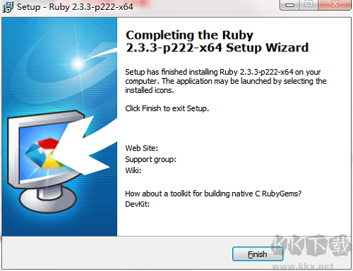 4.Ruby安裝完成,單擊Finish,退出安裝向?qū)?br />
