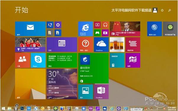3、Windows 8.1終于開始加薪換美工了,在這款全新的操作系統(tǒng)中,你可以讓開始屏幕自動繼承桌面壁紙,讓開始和桌面切換起來更加協(xié)調(diào)