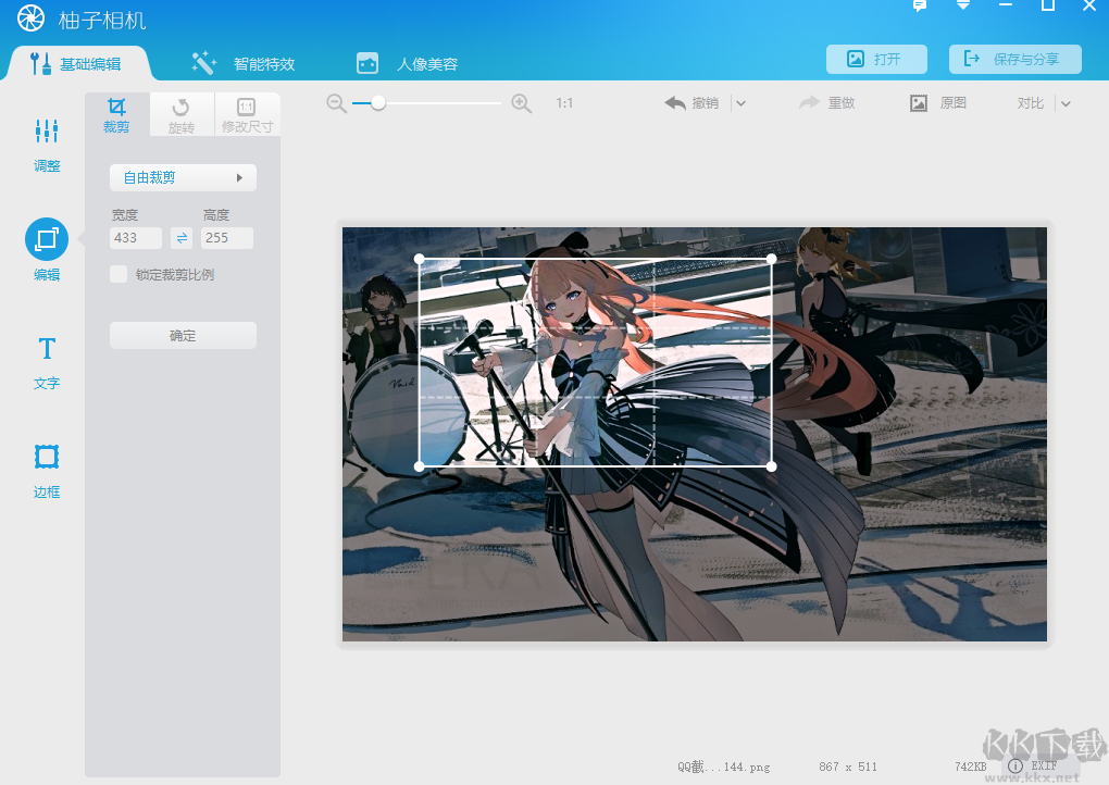 可以對照片、人像等圖片進行基礎的修改。例如一鍵進行美化、圖片的剪切以及添加文字、邊框等等