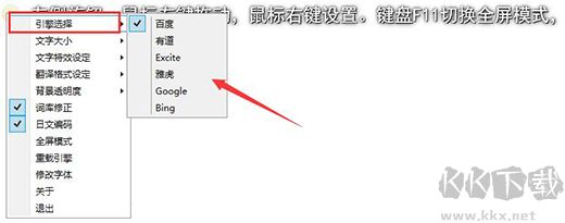 這可能是由于翻譯引擎暫時(shí)失效導(dǎo)致的,我們需要切換一下翻譯引擎。使用鼠標(biāo)右鍵單擊字幕欄左側(cè)的圓形按鈕,將鼠標(biāo)光標(biāo)懸停在下拉菜單中的“引擎選擇”功能上,然后在右側(cè)打開(kāi)的子菜單中切換至其他翻譯引擎即可。