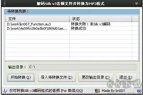Silk2MP3的作用主要是在Windows下批量轉(zhuǎn)換Silk v3音頻文件為其他格式(不單是MP3)