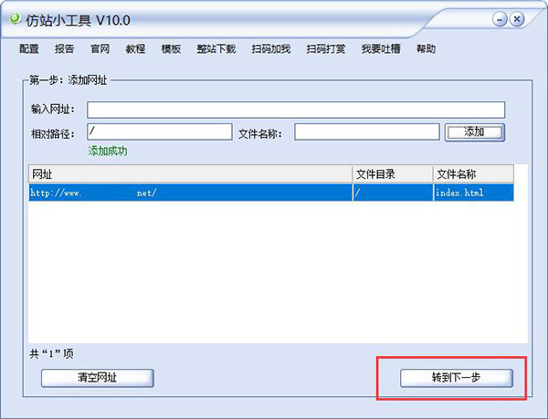 1、添加你要下載的網(wǎng)頁url地址到仿站小工具中