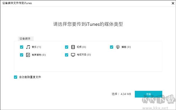 2、將顯示設(shè)備上找到的所有媒體文件。默認(rèn)情況下,將勾選所有文件類型。您還可以選擇所需的文件以傳輸?shù)絠Tunes: