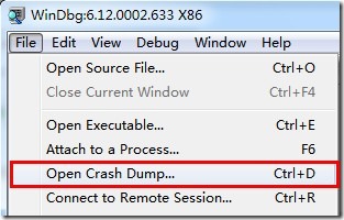 1、運(yùn)行WinDbg工具,這里可以點(diǎn)擊WinDbg界面上的最上方的【File文件】=>Open Crash Dump…】按鈕,來(lái)打開(kāi)一個(gè)dmp文件。(打開(kāi)在彈框中打開(kāi)我們的dump文件即可。)