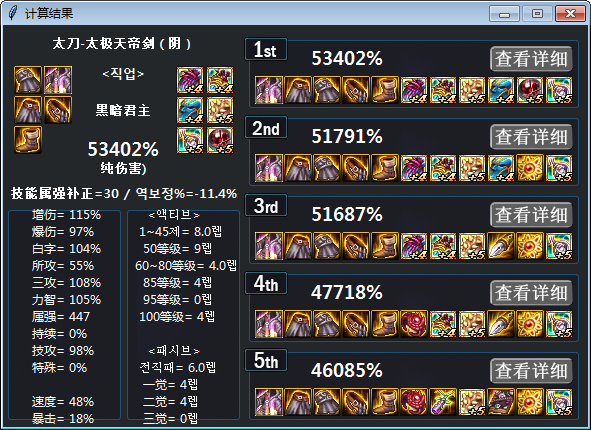 5.如下圖所示,可以看到當(dāng)前裝備搭配的具體傷害