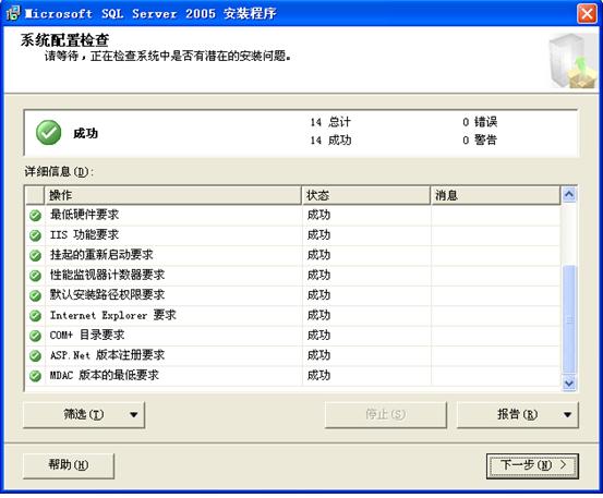 點(diǎn)擊下一步,系統(tǒng)開始對(duì)系統(tǒng)配置進(jìn)行檢測(cè)