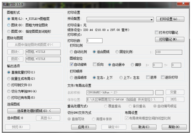 5、確認(rèn)以上設(shè)置的內(nèi)容無誤,點擊“應(yīng)用”。選擇要處理的圖紙,選中一個以后再按下面的批量選擇所有的圖紙;