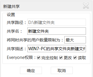 Everyone權(quán)限,用于控制共享目錄的權(quán)限,分別是”完全控制”、“更改”、“讀取”點(diǎn)擊確定按鈕即可完成簡單的文件共享
