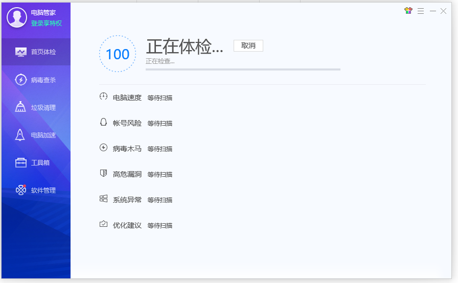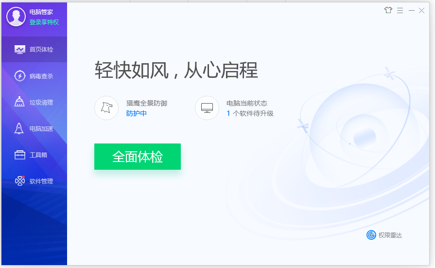 打開QQ電腦管家,進入界面,點擊【首頁體檢】——【全面體檢】