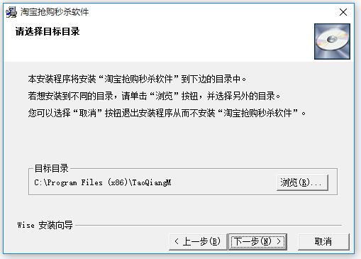 下載淘寶天貓搶購軟件,解壓壓縮包,雙擊.exe文件,彈出界面,根據(jù)向?qū)Р僮鳎?br />