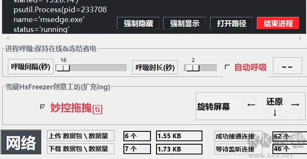 4、進程自動唿吸功能(網(wǎng)游黨の福音),可保持在線&省電兩不誤,特別適用于需要保持在線又未想掉線重連的情景。