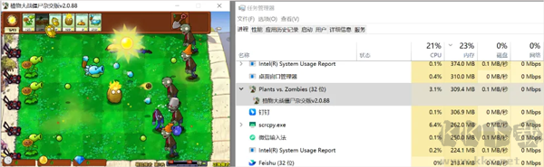 下面咱們就來試試效果,開啟游戲的時候,CPU和內(nèi)存占用如下: