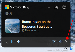 1、在桌面下面的小圖標里點擊必應壁紙,出現彈窗后通過上一個或者下一個;