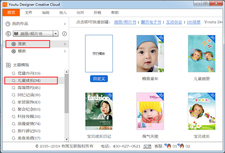 2、這里小編選擇豎款,其提供了多種模板供用戶選擇,選擇兒童成長(zhǎng)www.qabbs.com