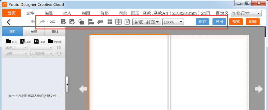 YoutuDesigner可讓你輕輕松松加上文本、圖片、圖型等內(nèi)容,讓你的有圖書以你要想的方法展現(xiàn)。如果你把圖片導(dǎo)進(jìn)進(jìn)去時(shí),文圖的版式會(huì)依據(jù)您挑選的合理布局而轉(zhuǎn)變 。你乃至還能夠?qū)нM(jìn)PDF和psd文件,并在YoutuDesigner中開展編寫,使其日趨極致。