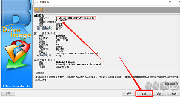 6、之后就會進入到下圖所示的界面了,在這個界面中可以看到鏡像文件的名稱以及儲存路徑、還有創(chuàng)建鏡像的對象,用戶檢查無誤之后點擊右下角的啟動按鈕即可開啟創(chuàng)建鏡像的操作。