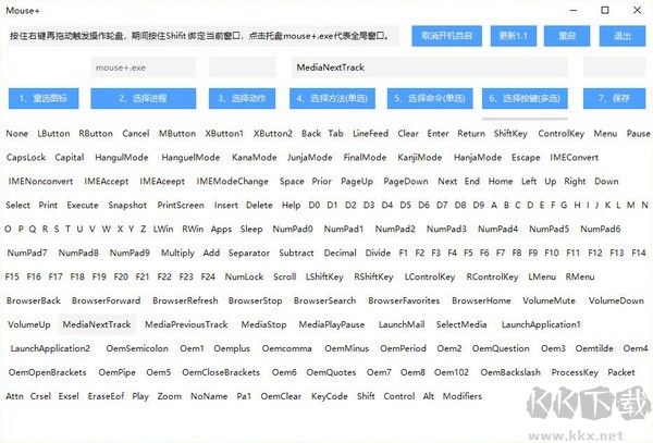5、選擇按鍵,如“MediaNextTrack”播放下一首的多媒體按鍵可以自己組合不同的快捷鍵
