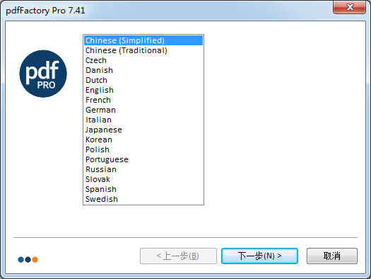 1.下載pdfFactory,解壓壓縮包,雙擊.exe文件,彈出界面,選擇語言【Chinese Simplified】,簡體中文,