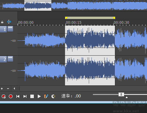進(jìn)入到編輯界面后,如圖2所示,選擇一小段歌曲的人聲部分,用鼠標(biāo)左鍵拉取選定,方便下一步調(diào)試效果。選定好了之后,開始編輯這段人聲部分。