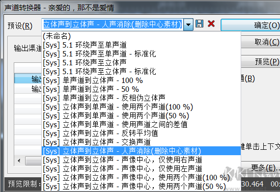 點(diǎn)擊任務(wù)欄的“進(jìn)程”,找到其中的“聲道轉(zhuǎn)換器”并打開,下面就需要用它來去除人聲。接著如圖3所示,選擇預(yù)設(shè)中的“人聲消除”。