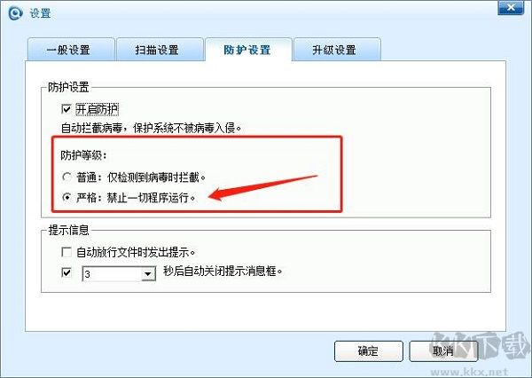 3、“嚴(yán)格”防護(hù)下,任何軟件也無(wú)法啟動(dòng)。如要進(jìn)行正常操作,將防護(hù)等級(jí)改回正常即可。